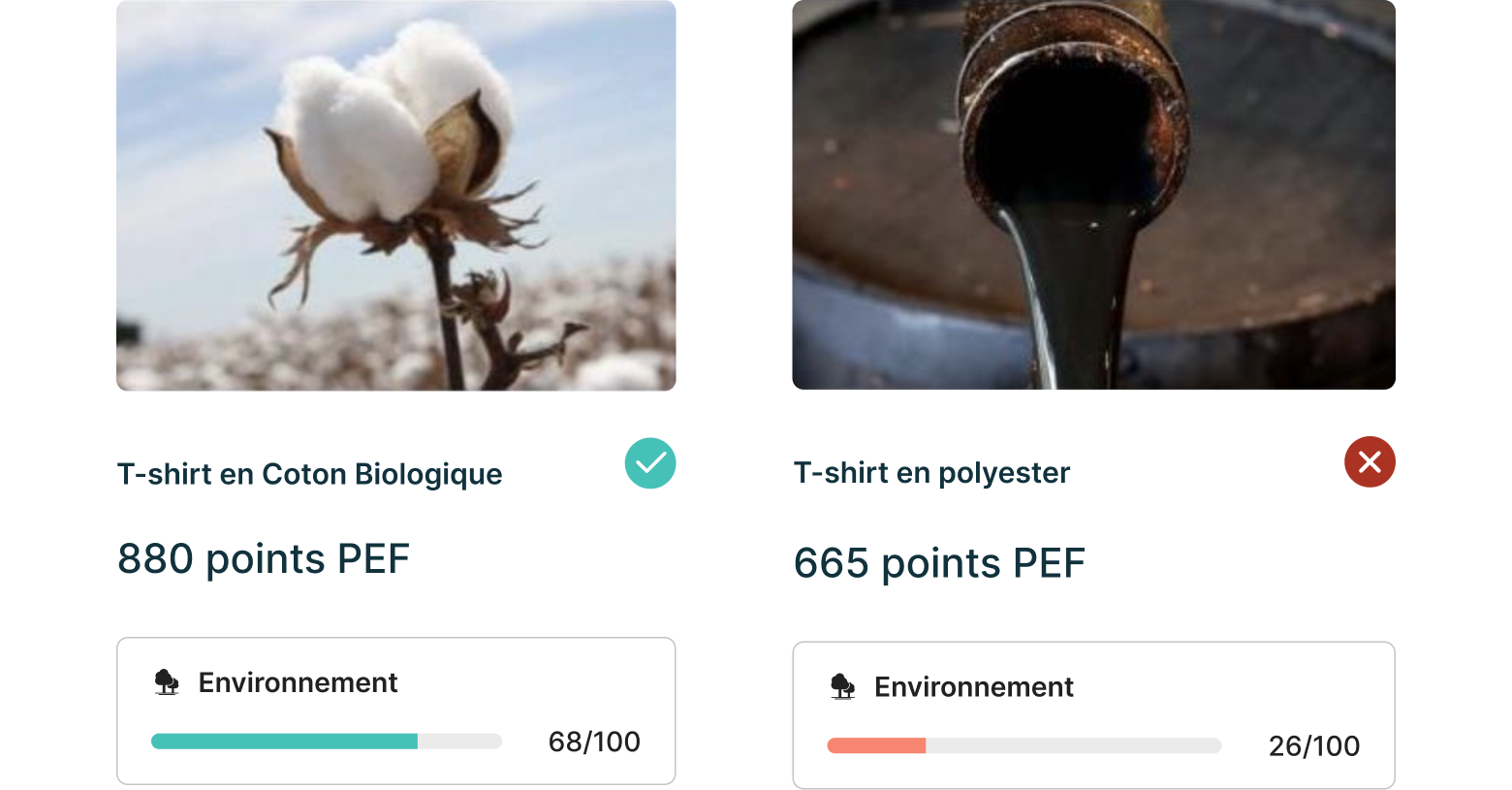 Par exemple, un t-shirt produit en France avec des matiĂšres recyclĂ©es serait notĂ© 90% et un t-shirt produit au Bangladesh avec du synthĂ©tique serait notĂ© 10%. Et tout ça serait obligatoire ce qui imposerait aux entreprises textiles dâĂȘtre vraiment transparentes avec vous.