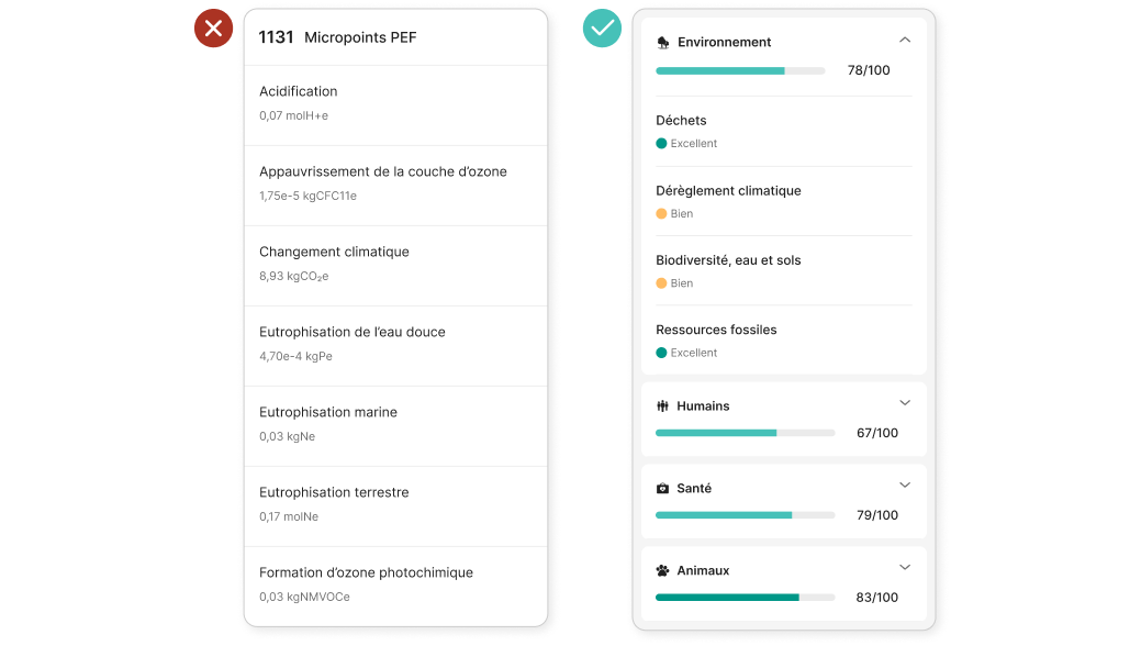 Un affichage qui va plus loin et ne prend pas en compte uniquement lâimpact sur lâenvironnement mais aussi lâhumain, la santĂ© et le bien ĂȘtre animal.