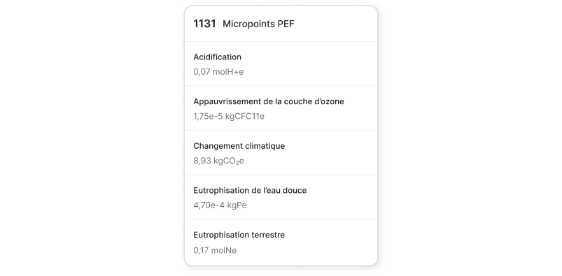 Et puis, comme on vous lâa briĂšvement expliquĂ© un peu plus tĂŽt, on a dĂ©veloppĂ© une offre pour les entreprises pour les accompagner dans la mise en place de leur affichage environnemental, un affichage juste, clair, lisible et pertinent intĂ©grĂ© Ă notre mĂ©thodologie actuelle.